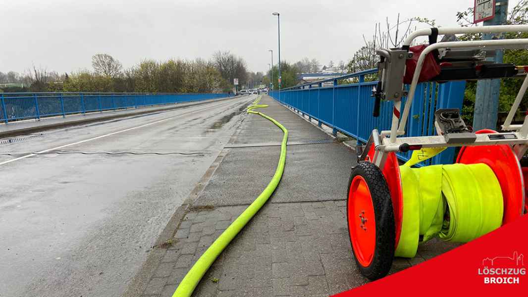 Der Löschzug Broich rückte mit dem HLF direkt zur Einsatzstelle aus und wurde in die umfangreichen Löschmaßnahmen mit eingebunden. Mehrere Trupps unter Atemschutz bekämpten das Feuer, teilweise kam Schaum zum Einsatz. Darüber hinaus musste eine Wasserversorgung von weiter entfernten Hydranten hergestellt werden.